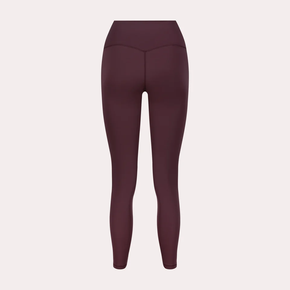 With a flattering high-rise waistband and a sleek, streamlined silhouette, these leggings provide gentle compression without feeling restrictive. The deep burgundy shade adds a rich, elevated touch, making them easy to style from workouts to everyday wear.